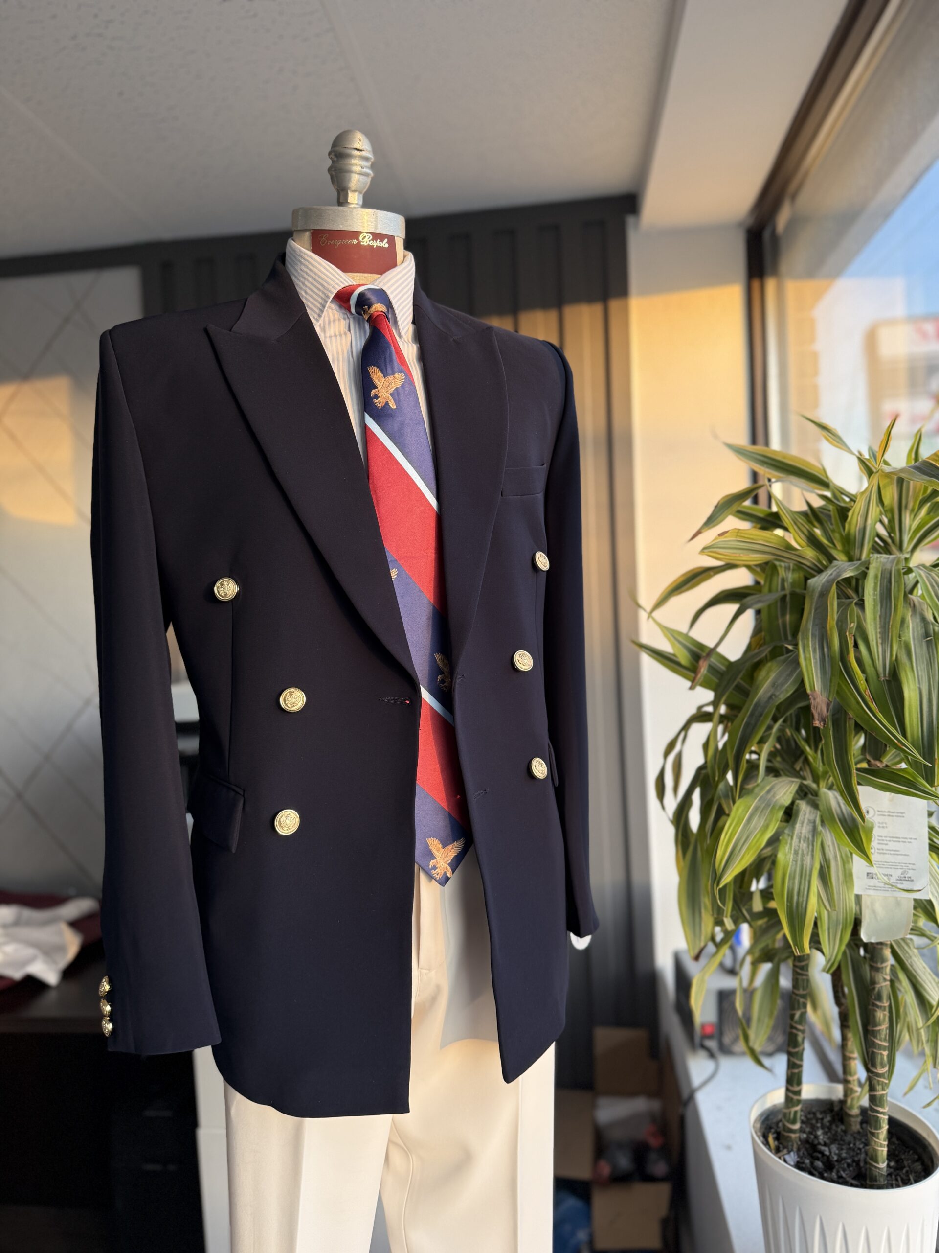 Navy Blue Double-Breasted Blazer with Gold Buttons